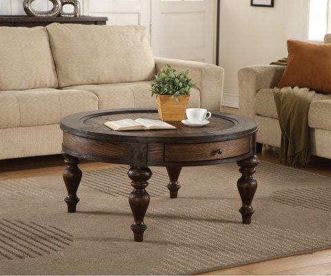 Product features constructed from solid wood planks with a distressed reclaimed look; 2 out of 2 (100%) reviewers recommend this product. The sonora round coffee table features a mission style design with beautiful oak construction in a warm vintage wood finish. This coffee table with drawers and shelves has been rigorously tested to meet the standards for safety, performance, and durability and is backed by a 1 year. Click for the latest info on our shopping safety measures, customer service and order lead times.